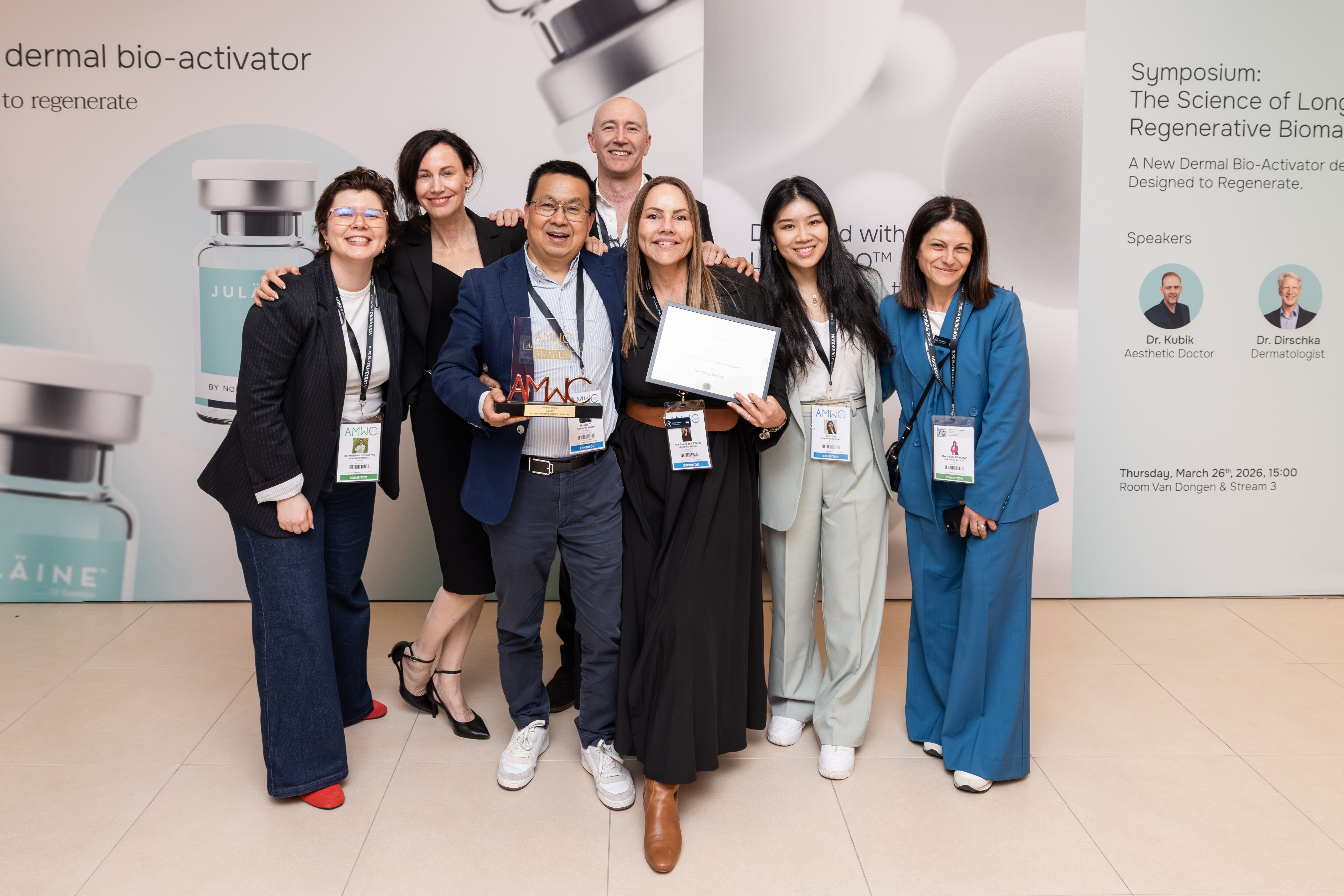 Swedish biomaterial-based medical device manufacturer Nordberg Medical, proudly announces that it has received the AMWC 2026 Award for Best Regenerative Aesthetics Solution for its new and unique PLLA-based injectable JULÄINE™.